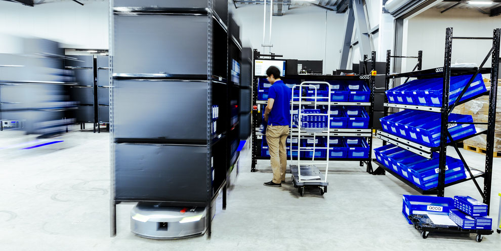 Robots deliver shelves to your station, cutting travel time and labor costs while boosting throughput.